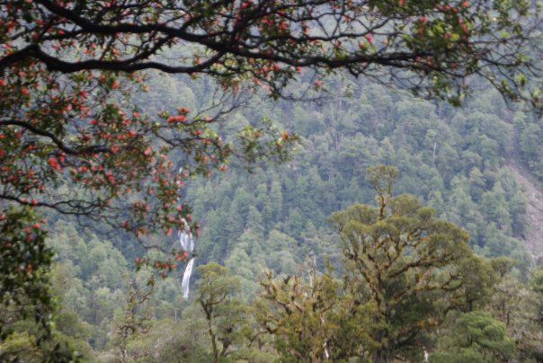 As we came towards and closer to the start of the track I got quite a knot in my stomach at the challenge ahead. The track was however, much as I expected. Rough and smooth surfaces, lot of ferns and beech trees, and we had a special treat of viewing riflemen birds in a rata tree in flower. They were acting a lot like humming birds – hovering below the flowers.
