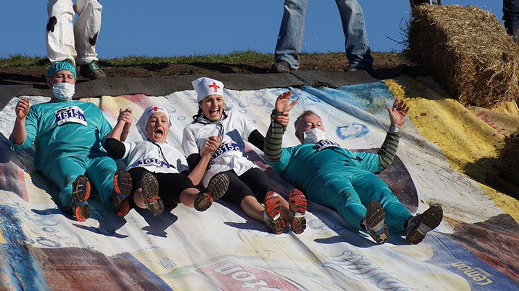 My photo club went out to Motukarara on the Banks Peninsula to photograph the cross country run they have there every year. By far the highlight of the run (at least for the crowd watching) is the water slide the runners are forced to go down. It always provides some great photographic opportunities.
