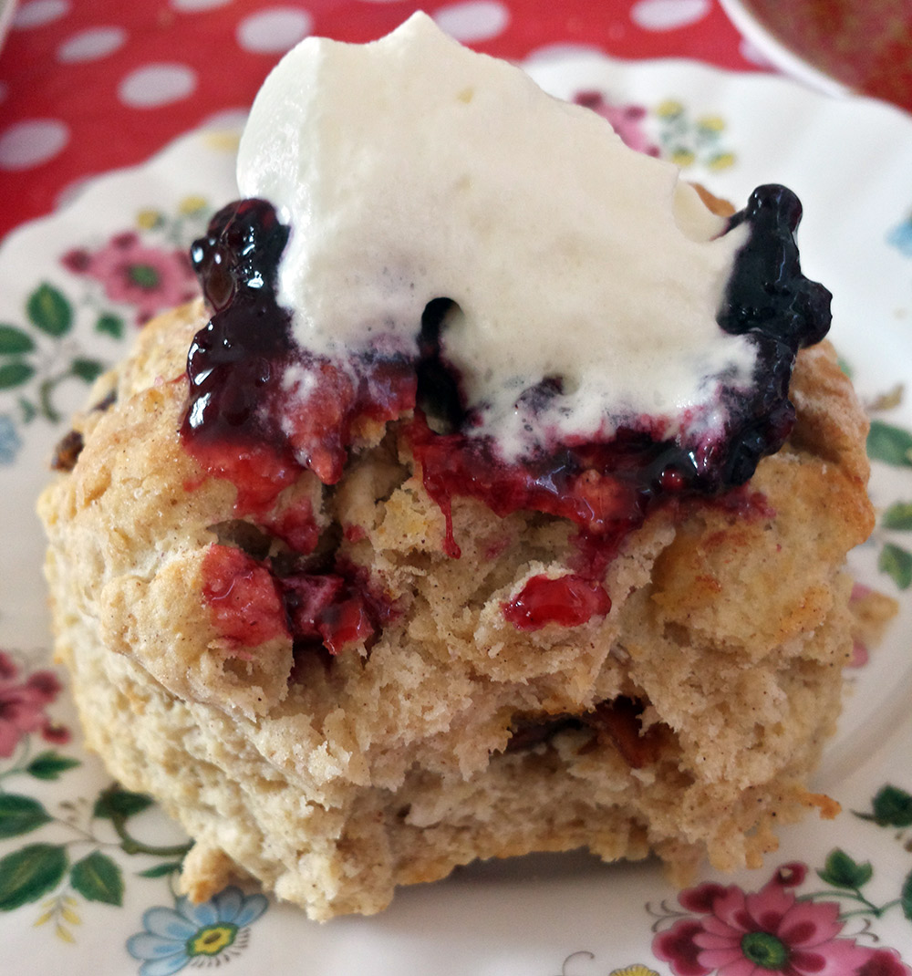 Date and Cinnamon Scone with Mixed Berry Compote and Whipped Cream