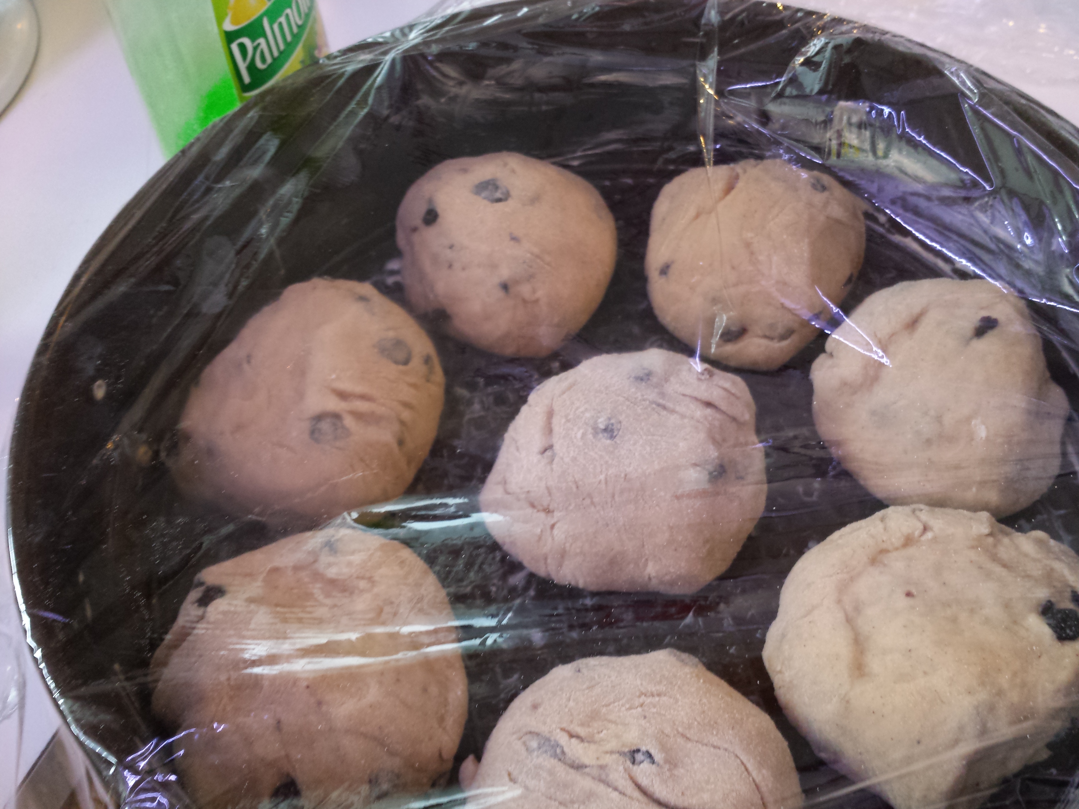 Here’s the before photo – the bun dough was left in a warm place for 20 minutes to rise (I use my oven for this, setting it on a low temperature and then turning it off).