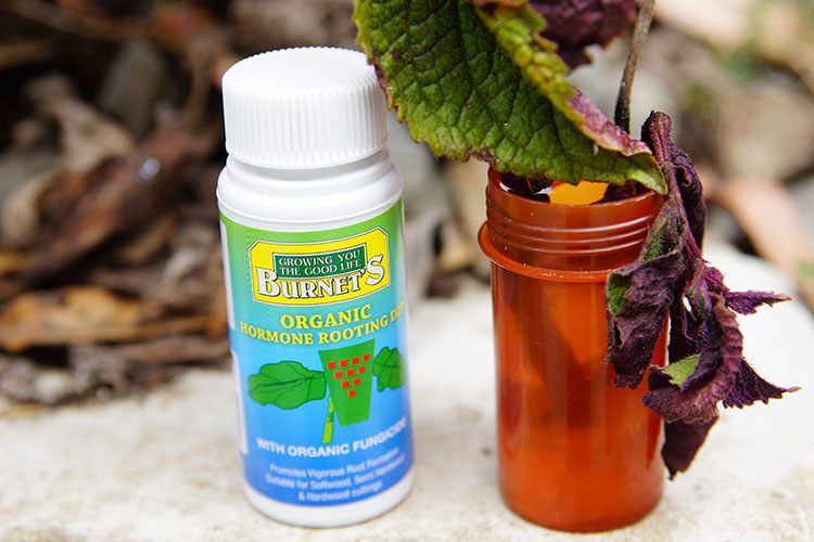 I’d been thinking for a while about doing some cuttings and starting a little tree nursery at home for when we are ready to plant out the back of the house, so I grabbed myself some rooting dip. I was pretty sure this particular plant (I’m not sure what it is) would root from just water and it did in fact have a small root on it, but I decided to give it the best shot possible, so I snipped some of the bottom of the plant and dipped it in the root mixture. I then put it in a pretty big pot for the size of the plant so it would not have too many issues with retaining water.