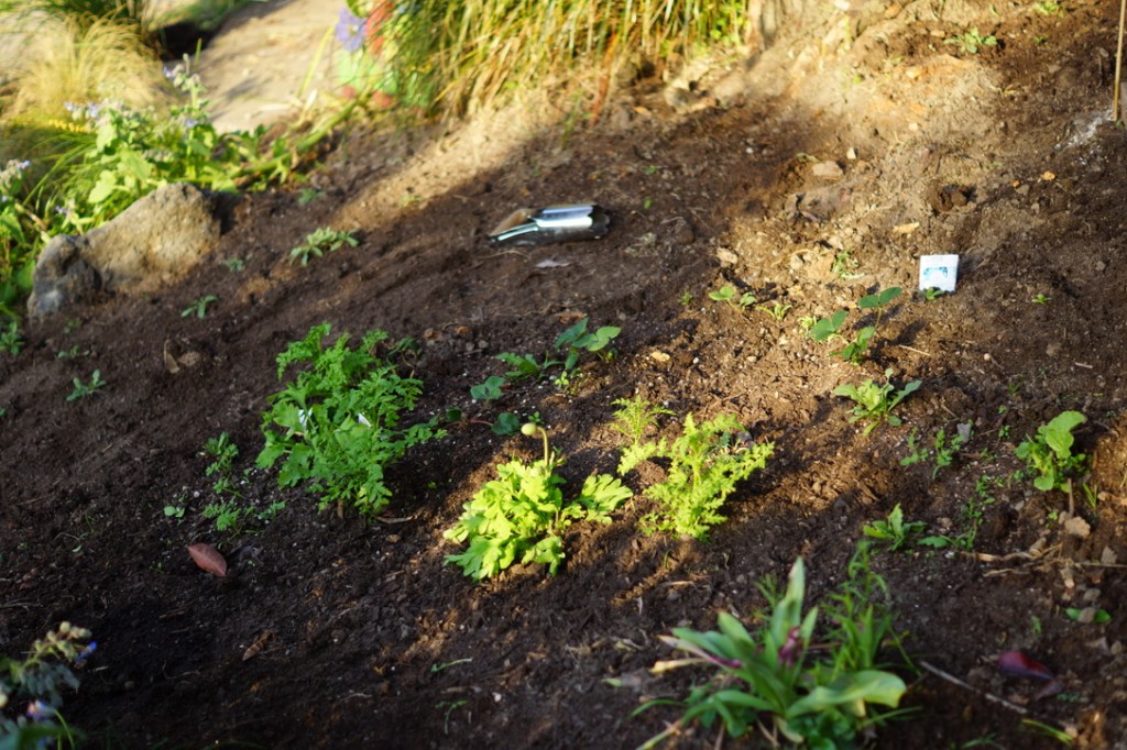 I wasn’t able to do this last year, as I couldn’t dig into this section as it’s mostly stones. Luckily, with the mattock I was able to dig a decent hole and put in some lime and some compost. It also got some bark on top and a good watering.