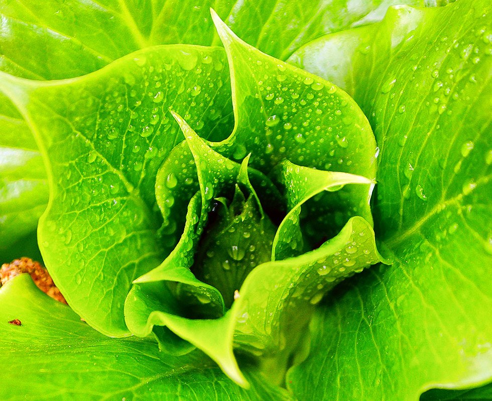 Green Leaves with Morning Dew Drops